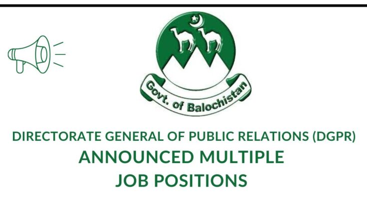 Directorate General of Public Relations (DGPR) Balochistan Jobs 2026. The Directorate General of Public Relations (DGPR), Balochistan, is a key government department responsible for managing official communication, media relations, public awareness campaigns, and information dissemination on behalf of the Government of Balochistan. DGPR plays a vital role in ensuring transparency, promoting government initiatives, and strengthening public trust through accurate and timely information.