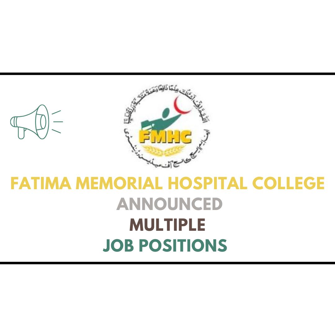 Fatima Memorial Hospital College FMHCMD Jobs. Fatima Memorial Hospital College of Medicine & Dentistry (FMH CMD) is one of Pakistan’s most reputable private-sector medical teaching institutions, located in the heart of Lahore. Affiliated with the 470-bed Fatima Memorial Hospital, FMH CMD has established itself as a center of excellence in undergraduate and postgraduate medical education, clinical training, and biomedical research. The institution is fully recognized by the Pakistan Medical & Dental Council (PM&DC) and the College of Physicians & Surgeons Pakistan (CPSP) for postgraduate training in major clinical and basic medical disciplines.