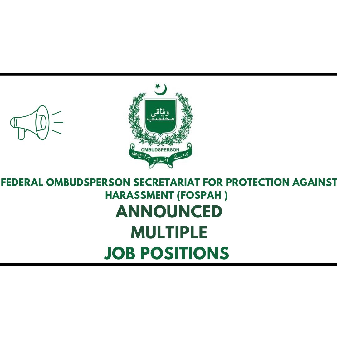Federal Ombudsperson Secretariat FOSPAH Jobs 2025. The Federal Ombudsperson Secretariat for Protection Against Harassment of Women at the Workplace (FOSPAH) is a specialized federal government body mandated to ensure a safe, respectful, and harassment-free workplace for women across Pakistan. Operating under the Government of Pakistan, FOSPAH implements laws and policies related to workplace harassment, provides legal redress, conducts awareness campaigns, and monitors compliance across federal and provincial institutions.
