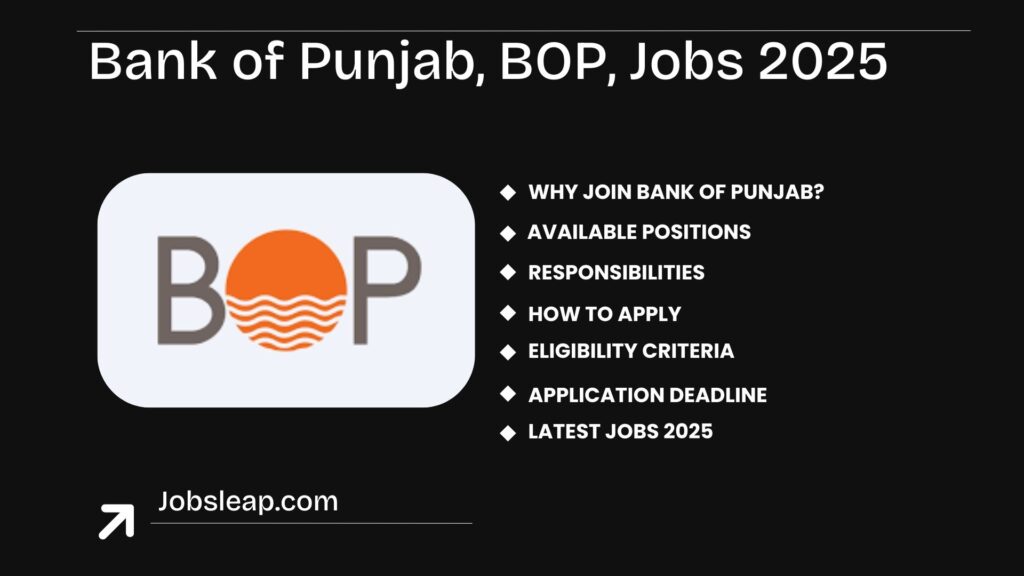 Bank of Punjab, BOP, Jobs 2025. Discover senior roles like Head Digital Lending or Product Manager Agri. Apply online at https://www.bop.com.pk/available-jobs by October 7, 2025! Advance your finance career in Pakistan’s dynamic banking sector today!