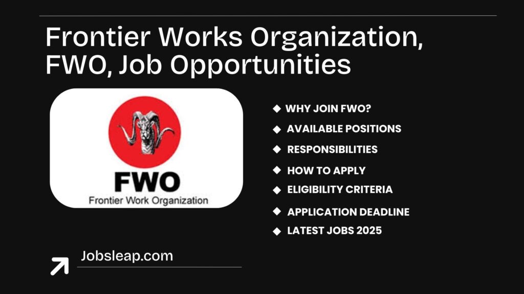 Frontier Works Organization, FWO, Job Opportunities. Join Frontier Works Organization (FWO) for exciting career opportunities in Rawalpindi, Pakistan, in 2025. Grow your career with a prestigious national organization offering roles in engineering, geology, and chemistry. Apply now at http://career.fwo.com.pk/ and secure your future with FWO’s impactful projects!