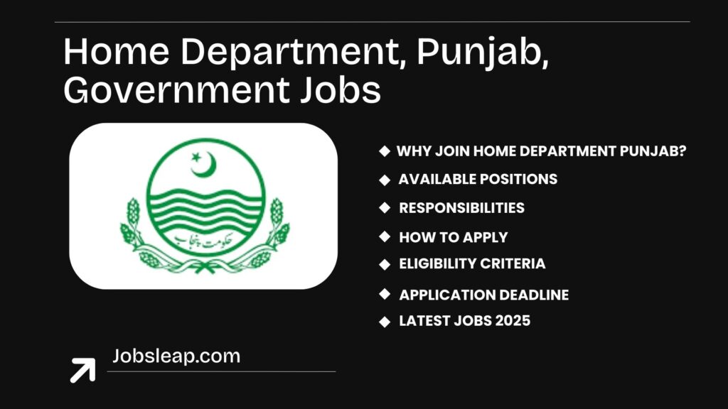 Home Department, Punjab, Government Jobs. Discover rewarding government jobs in Punjab’s Home Department. Apply for audit, IT, and admin roles with competitive salaries up to Rs. 200,000/month. Secure your public sector career—submit applications online before 25th October 2025 via Punjab Job Portal!