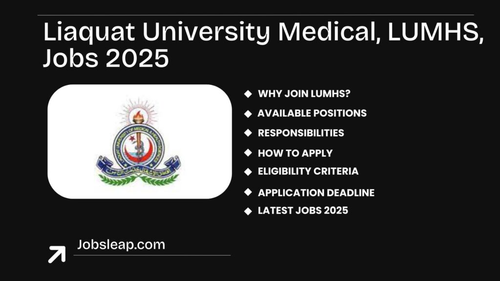 For university roles, official sites like www.lumhs.edu.pk provide authentic vacancy details and application processes.<grok:render type=”render_inline_citation”>