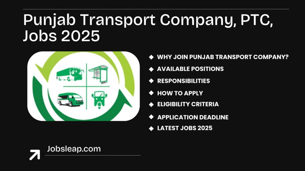 Punjab Transport Company, PTC, Jobs 2025. Accelerate your career at Punjab Transport Company! Chief Internal Auditor, Manager Operations, Deputy Manager Procurement & 11 more roles in Lahore. Market pay, 3-yr contracts. Apply online by Oct 18, 2025—drive Punjab’s mobility!