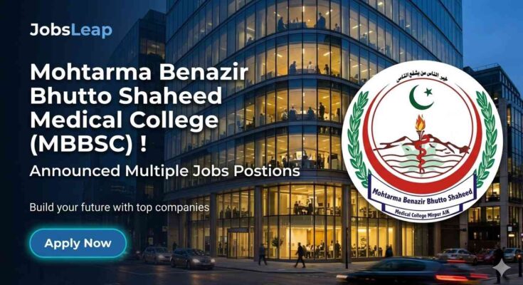 Mohtarma Benazir Bhutto Shaheed Medical College (MBBSC) in Mirpur, Azad Jammu & Kashmir, is a government medical college recognized by PM&DC. The college invites applications for over 42 faculty positions including Professors, Associate Professors, Assistant Professors, Senior Registrars, Senior Lecturers, and Demonstrators. Departments include Cardiology, Psychiatry, ENT, Surgery, Pediatrics, Nephrology, Radiology, and more. Salaries range from Rs. 90,000 to Rs. 300,000 per month. This is a contract-based appointment for 3 years, extendable.