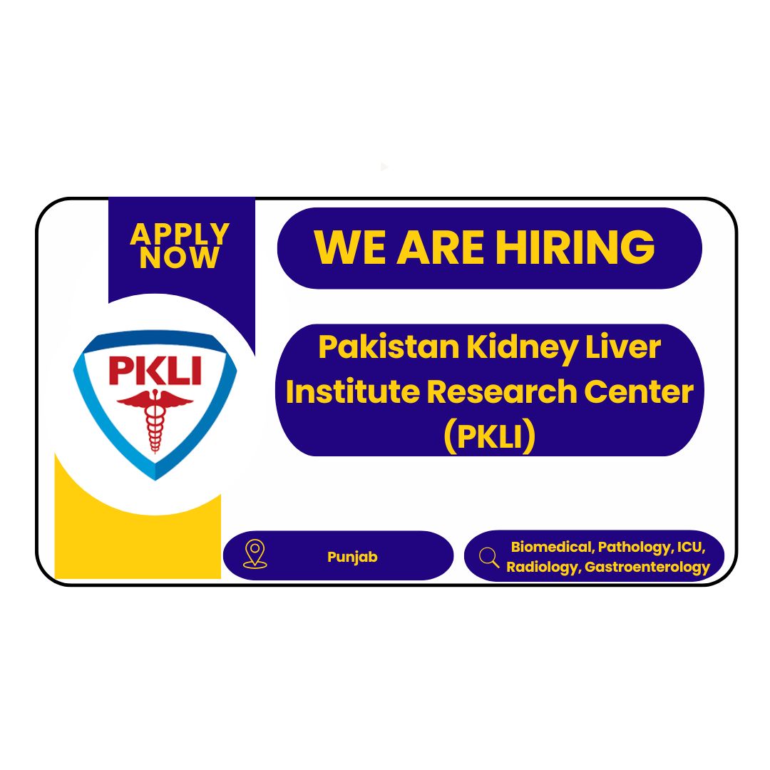 Pakistan Kidney Liver Institute Research Center, PKLI Jobs 2025. The Pakistan Kidney and Liver Institute & Research Centre (PKLI&RC) is a state-of-the-art, quaternary care medical and research facility established under the PKLI&RC Act 2019 by the Provincial Assembly of Punjab. With campuses located in Lahore and expanding services to Rawalpindi, PKLI&RC is dedicated to delivering world-class clinical care, cutting-edge research, and advanced medical education. Built to international standards, the institute operates with a mission to combat chronic diseases—particularly kidney, liver, and transplant-related disorders—through innovative treatments and compassionate care.
