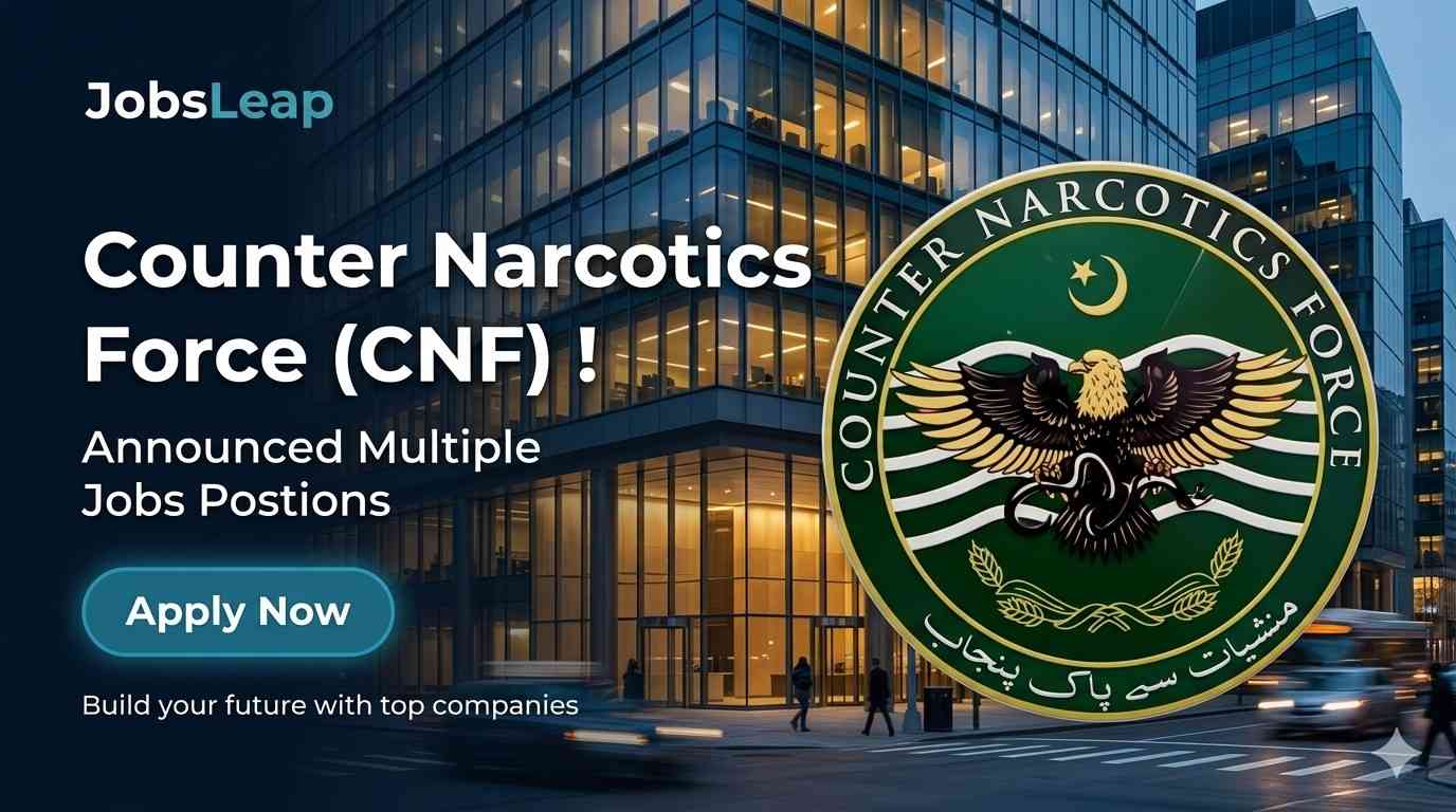 Punjab Counter Narcotics Force Jobs Lahore 2026. The Punjab Counter Narcotics Force (CNF) operates under the Excise, Taxation & Narcotics Control Department, Government of the Punjab. Headquartered at 204-A, Scotch Corner, Upper Mall Scheme, Lahore, CNF is a specialized law enforcement agency dedicated to combating drug trafficking, narcotics abuse, and related criminal activities across Punjab. For 2026, CNF invites applications for 48 contract positions (3 years, extendable) with attractive lump-sum pay packages: Assistant Director (Legal) at Rs. 273,132/month and Sub-Inspector (IT/AI) at Rs. 185,820/month. Positions are open to male and female candidates with Punjab domicile. Quotas for women, minorities, and disabled persons are applicable. Applications are accepted by post or by hand at CNF Headquarters. The deadline is May 8, 2026.