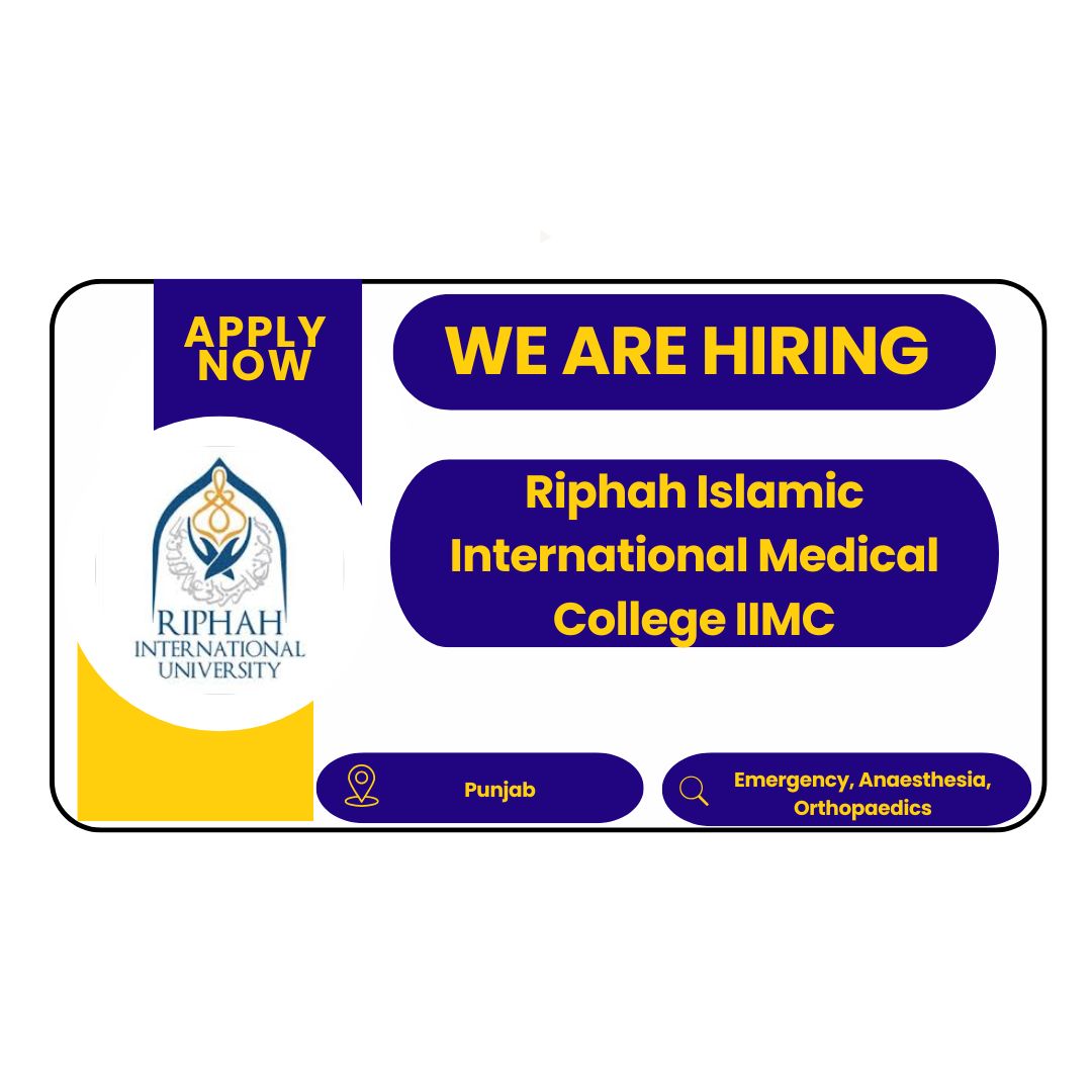 Riphah Islamic International Medical College, IIMC Jobs 2025. Riphah Islamic International Medical College (IIMC) and Pakistan Railway Hospital operate under a renowned not-for-profit group that has been serving Pakistan for nearly 29 years. Established with a mission to integrate Islamic ethical values with modern healthcare delivery, the organisation has grown into a premier network of nine academic campuses and four state-of-the-art teaching hospitals across Pakistan and the UAE. With strong foundations in quality medical education, holistic patient care, and technological innovation, the group is recognised nationally for its commitment to excellence.